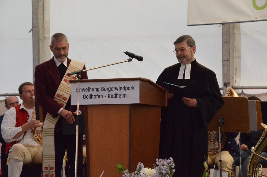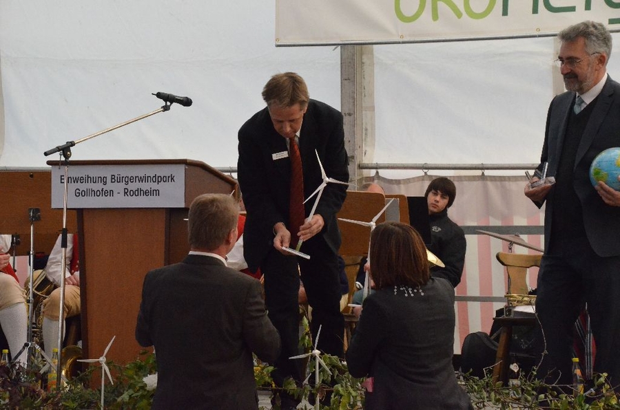 Der Windpark mit einem Investitionsvolumen von 24 Millionen Euro erstreckt sich entlang der A7 bei Gollhofen/Rodheim und wurde von der Ökonergie AG zusammen mit den Bürgern realisiert. Die sechs Windenergieanlagen befinden sich im Besitz von 275 Privatpersonen aus den umliegenden Gemeinden, die sich an der Bürgerwindpark Gollhofen-Rodheim GmbH & Co. KG beteiligt haben. So wird gewährleistet, dass die Anwohner auch diejenigen sind, die wirtschaftlich vom Windpark profitieren. Denn eine erfolgreiche Energiepolitik braucht Akzeptanz und Unterstützung in der Gesellschaft.